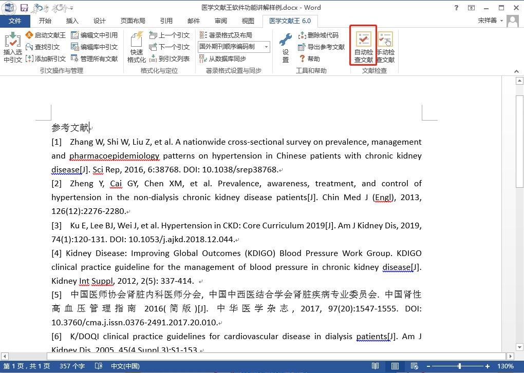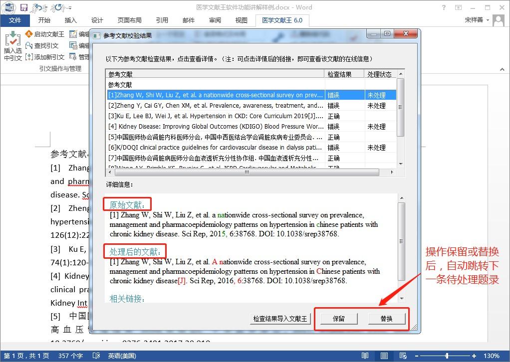 医学文献王参考文献检校功能说明