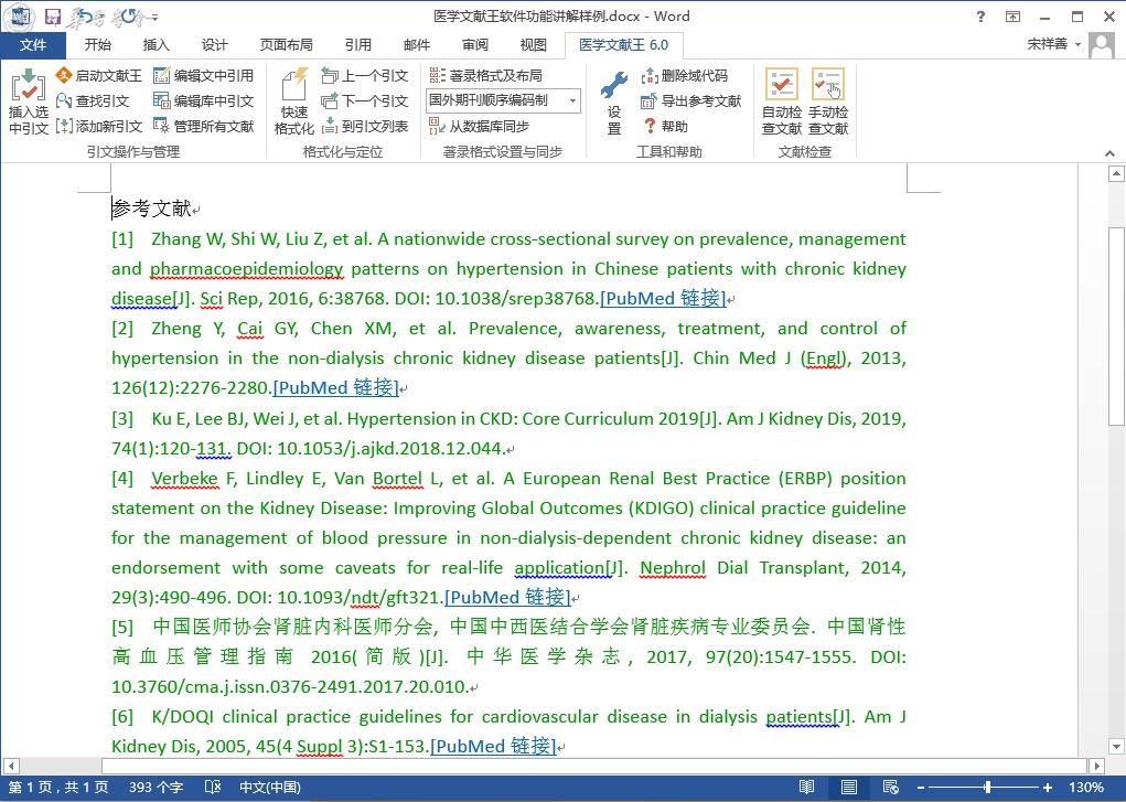 医学文献王是面向医学生、医学工作者的文献管理工具,能为您保存和管理整个职业生涯的文献资料。医学文献王V6.0版本提供了参考文献的检校服务,说明如下: